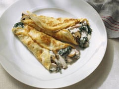 Poulet à la crème, aux champignons et aux épinards en crêpes
