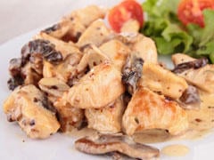 Une recette de poulet aux champignons rehaussée par une sauce crémeuse au champagne.