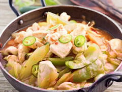 9. Ajouter dans le wok quelques légumes croquants coupés en bâtonnets.
