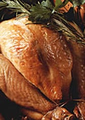 Fourrer le poulet avec la moitié des herbes : thym, romarin, sauge et persil.