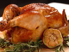 Servez le poulet dans 4 assiettes, démoulez les 4 ramequins.