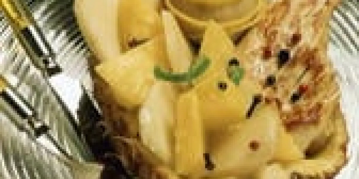 Même procédé que le poulet en cocotte Parmentier. Ajouter à moitié cuisson des pommes de terre, des petits oignons et quelques dés de lard, le tout préalablement blanchi. Laisser cuire en arrosant souvent ; déglacer avec fond de veau et glacé de volaille, puis verser sur le poulet découpé.