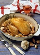Poulet rôti en cocotte avec son ail