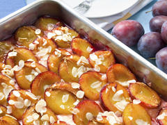 Disposer les fruits dans un plat, les arroser de miel, les saupoudrer de sucre et d’amandes en poudre.