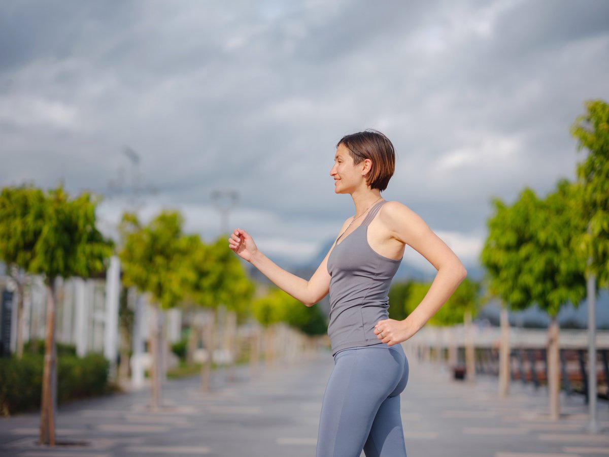 outdoor sports, workout and wellness concept asian young strong, confident woman in sportive clothes in green park brunette marathon training or morning daily running habit
