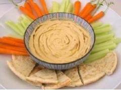 7. Essorez les pois chiches puis passez les au mixeur en ajoutant l’ail, le jus du citron, le piment et le sel.