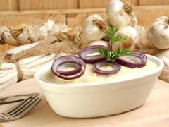 En même temps, faire revenir les oignons épluchés et finement émincés dans une poêle avec l'huile d'olive, jusqu'à ce qu'ils deviennent transparents et légèrement dorés.