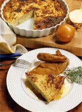 3 oeufs, 1/2 litre lait, 80g farine + 50g maïzena, 175g gruyère râpé, sel, poivre, muscade, 250g lard fumé coupé en dés et rissolé sans matière grasse.