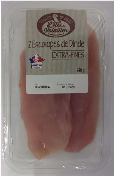 • GTIN 3571322779464 Lot Escalopes de dinde x3 Date limite de consommation 08/07/2022