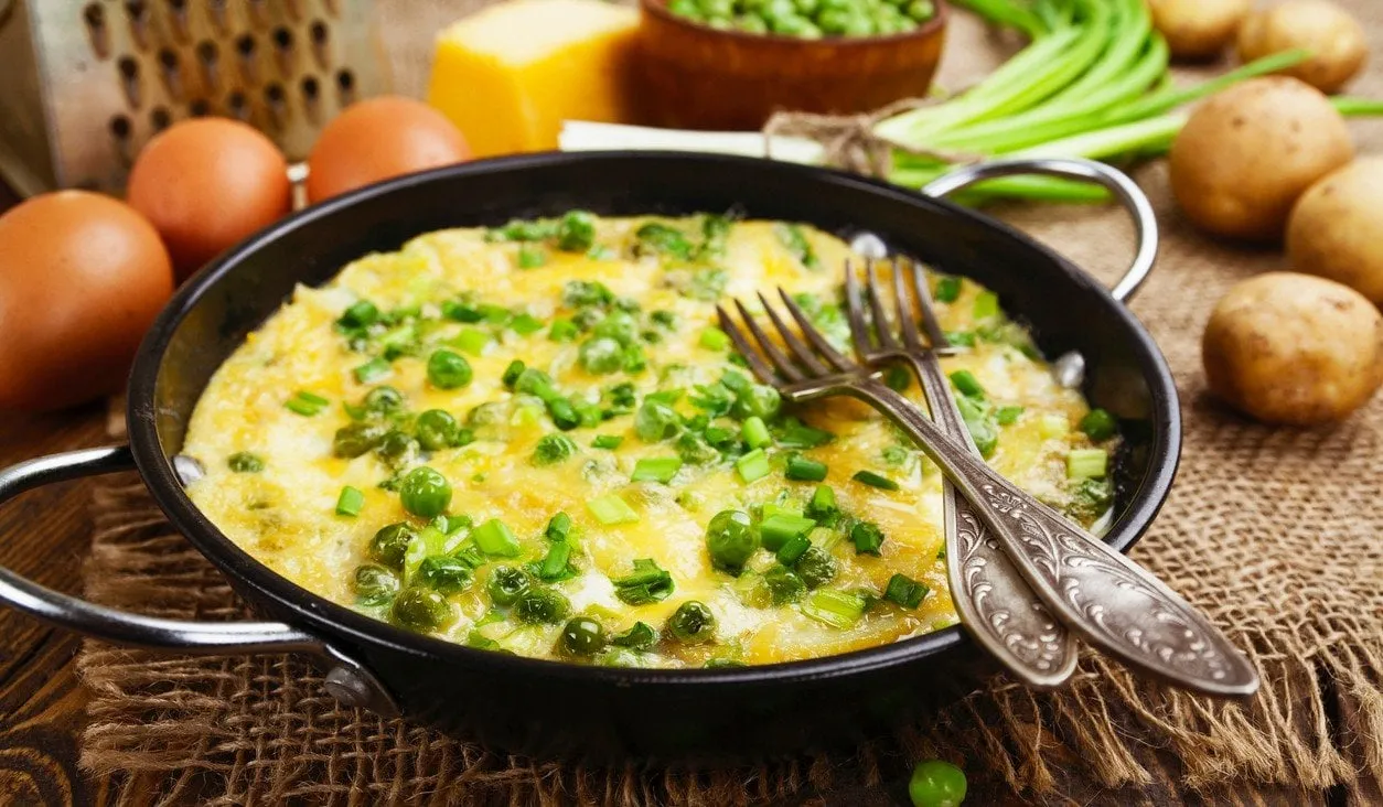 Faites chauffer l’huile d’olive dans une poêle. Versez-y les petits pois, et recouvrez directement avec l’appareil aux œufs. Laissez cuire sur feu doux, jusqu’à ce que la texture de l’omelette vous convienne : baveuse ou plus ferme. Servez aussitôt.