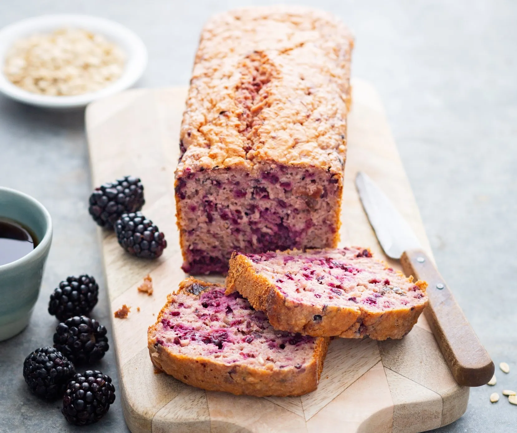 Verser la préparation en 3 fois dans une terrine en silicone d’une contenance de 500 ml. Répartir les mûres restantes et les dés de pruneaux entre chaque couche. Terminer par une couche de pâte et lisser la surface. Enfourner pour 30 min. Couvrir et laisser reposer 15 min dans le four éteint. Démouler et laisser tiédir 1 heure sur une grille.