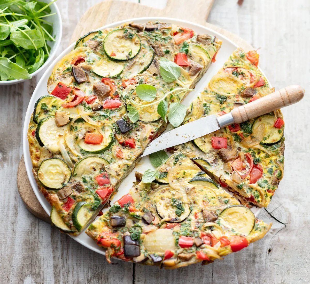 Verser le mélange dans un moule à manqué antiadhésif, lisser la surface avec une spatule et enfourner pour 30 min. Retourner la tortilla sur une assiette, puis la faire délicatement glisser dans le moule, enfourner à nouveau 10 min pour faire cuire l’autre face.