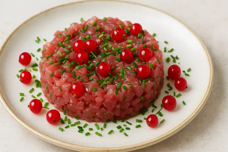 Couper le thon bien froid en petits dés. Le réserver au frais. Dans un bol, mélanger le jus de citron vert et l’huile d’olive. Ajouter l'échalote et la ciboulette finement ciselée, le sel et le poivre. Mélanger le thon dans la préparation, puis ajoutez les groseilles légèrement écrasées pour libérer un peu de jus. Tasser le tartare dans un cercle à pâtisserie ou servir en dôme.