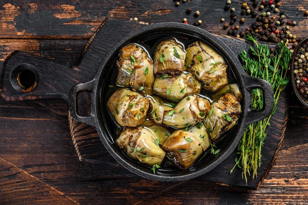 Pour leur donner un air de fête, les artichauts peuvent être présentés marinés. Pour cela, rien de plus simple : placez des morceaux d'artichauts dans un plat moyen en verre. Ajoutez le jus d'un citron, une petite pincée de sel, de poivre, une cuillère à soupe de vinaigre et d'huile d'olive, quelques graines de fenouil, du persil, des morceaux d'ail et d'oignon finement coupés. Avec une cuillère en bois, mélangez bien les ingrédients.