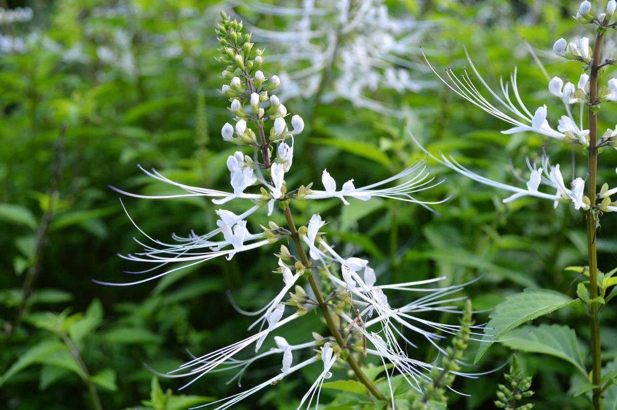 Orthosiphon stamineus est une plante aux longues étamines, qui évoquent les moustaches d’un chat, l'autre dénomination de cette plante. Elle facilite l’élimination des toxines et de l’acide urique par les reins. Cette propriété diurétique sera particulièrement utile pour favoriser la perte de graisse stockée autour des hanches, du bassin, des fesses et sur la poitrine.