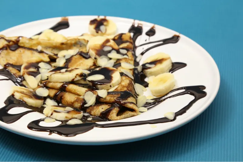 Des crêpes maison, avec un coulis de chocolat noir et des morceaux de banane vous offriront un dessert gourmand, sans trop de débordements. Pour réduire encore le sucre, Caroline Thomason conseille de remplacer les bananes par des baies.