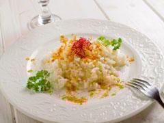 Ajouter ensuite le riz et le bouillon au curry. Poivrer et saler. Faire cuire à couvert pendant 17 minutes en remuant au moins 3 fois durant la cuisson.