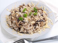 Le riz est cuit environ au bout de 25 à 30 minutes, les grains ne doivent plus résister sous la dent mais le cœur doit être encore ferme. Ajouter les morilles, vérifier l'assaisonnement.