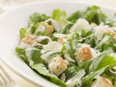 Dresser les assiettes et déposer le poulet sur la salade. Agrémenter de sauce césar selon les goûts.