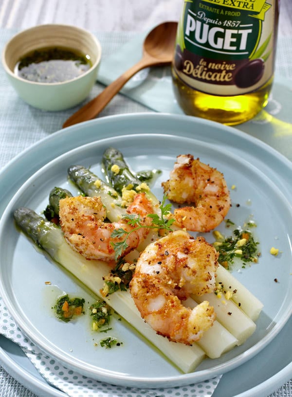 Ingrédients Salade d'asperges et crevettes croustillantes