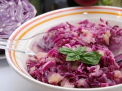 1. Couper le chou en quatre, retirer le trognon et l'émincer. Arroser avec 2 c. à soupe de vinaigre.