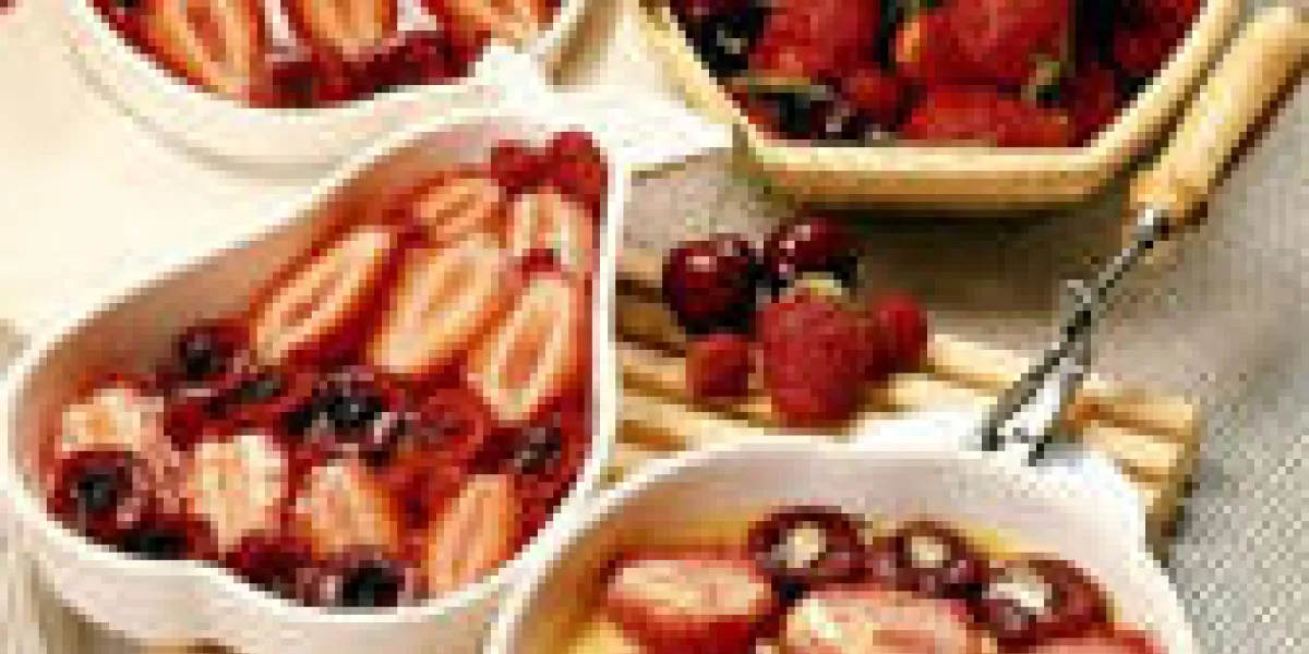 une délicieuse salade de fruits rafraîchissante à base de fraises, abricots, framboises et pêches