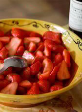 Laver, sécher et équeuter les fraises. Egrapper les groseilles. Filtrer le sirop. Verser les fruits et le sirop dans un saladier, couvrir d'un film étirable et laisser macérer 2 heures au frais.