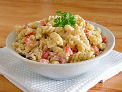 Faites cuire les ppâtes à l'eau bouillante salée. Egouttez-les bien, rincez-les à l'eau froide, égouttez-les à nouveau.