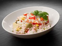 1. Faire cuire le riz dans une casserole d’eau bouillante, le temps indiqué sur le paquet.