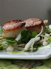 Salade de Saint-Jacques en croûte d'amandes, crème de laitue
