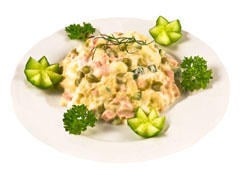Egoutter les légumes. Couper en dés les pommes de terre et les carottes.