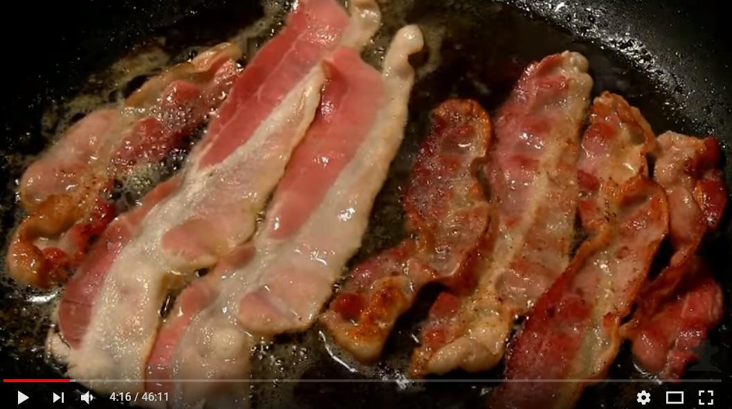 Dans cette vidéo, on y voit pendant 45 minutes des tranches de bacon se faire griller dans une poêle remplie d'huile. Mais le but n'est pas d'observer la viande brunir et se dorer au fur et à mesure de la cuisson, mais d'écouter le grésillement qui en découle. On pourrait penser que cette vidéo serait plutôt faites pour éveiller les papilles dès le matin, mais à en croire les nombreux commentaires sous la vidéo, elle a aidé plusieurs personnes à trouver le sommeil.
