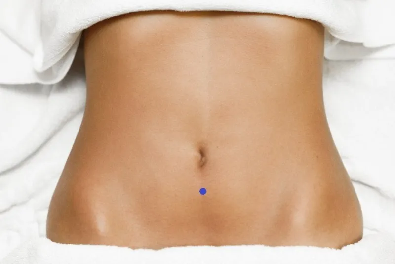 Après avoir travaillé le point GI4, stimulez le point VC6. Ce dernier renforce le gros intestin et détend l'abdomen. Il se trouve à 3 travers de doigt sous le nombril.