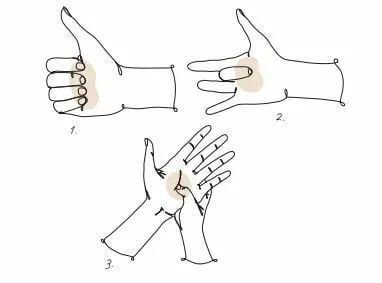 Pincez et massez la zone entre le pouce et l’index. Ce geste peut soulager les maux de tête et diminuer les tensions de la nuque et des épaules.