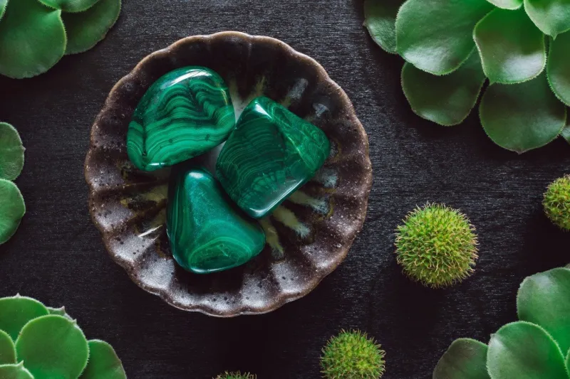 Rechargement et purification : purifiez la malachite en la posant quelques heures sur un lit de gros sel, puis rechargez-la en l’exposant aux rayons du soleil.