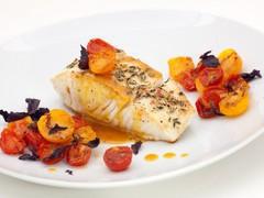 5. Ajouter ensuite les dés de poivrons, les tomates concassées, le thym, l'ail écrasé, le sel et le poivre.