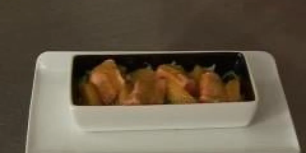 8. Sortir le saumon mariné, puis le rincer sous l’eau froide, sécher les pavés avec une feuille de papier absorbant.