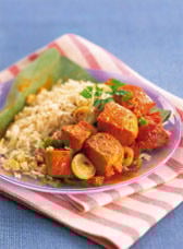 Dans une cocotte, bien faire dorer les morceaux de viande, ajouter l'oignon émincé et l'ail pressé.