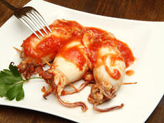 1. Nettoyer la seiche et la faire dégorger dans une sauteuse jusqu'à cuisson (toute l'eau de la sèche doit disparaître et la sèche doit devenir un peu rosée).