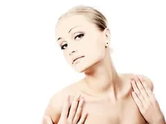 2/ Une main reposant sur l'épaule, placer l'autre sur les côtes. Tirer vers le haut et en travers, vers vous, en effleurant l'arrondi des seins. Pousser doucement sur les muscles pectoraux (au-dessus des seins).