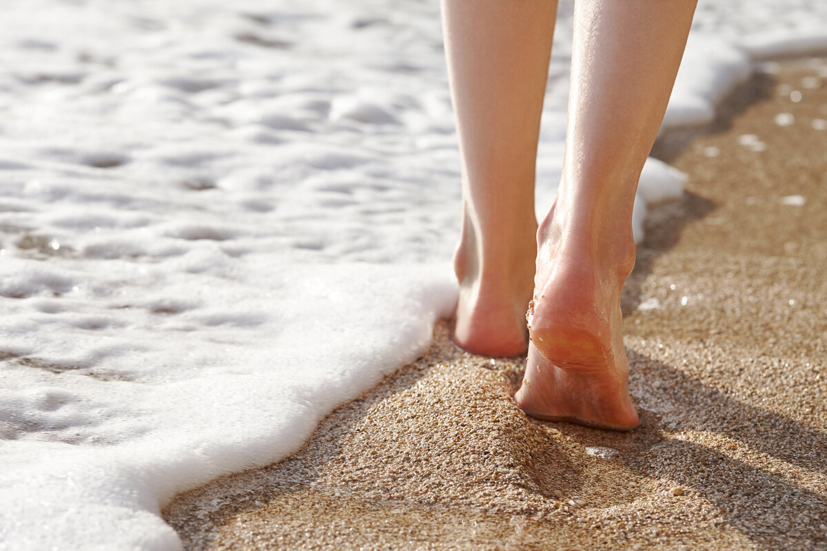 Marcher pieds nus dans le sable… en voilà un joli moment digne d’une carte postale. Si cela fait bon au moral, cela fera aussi du bien à votre corps et notamment à vos pieds endoloris par des mois passés enfermés dans des chaussures.
