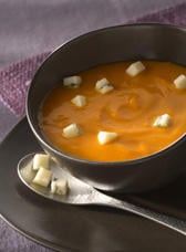 Dans chaque bol, verser la soupe et ajouter des cubes de Morbier qui vont fondre doucement.