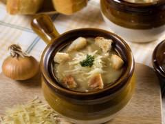 8. Faire fondre le beurre dans une poêle anti-adhésive. Couper le pain de mie en lui donnant des formes variées. Faire colorer les croûtons et verser dans la soupe.
