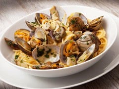 Egoutter les spaghettis, les mélanger aux palourdes. Faire sauter le tout sur feu doux, ajouter 3 louches d'eau de cuisson, bien mélanger, puis servir.
