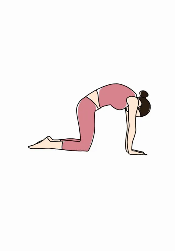 Mettez-vous à quatre pattes, les bras et les jambes bien droits. Dans une grande inspiration, creusez le dos et relevez la tête et les fessiers. Pensez à bien ouvrir la poitrine et à tirer les épaules vers l’arrière : c’est la position de la vache.
