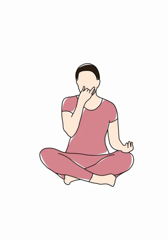 Asseyez-vous en tailleur ou sur une chaise en maintenant le dos bien droit et les épaules détendues. Repliez le majeur et l’annulaire de votre main droite. Avec l’annulaire, fermez votre narine gauche et inspirez avec la droite. Au bout de l’inspiration, fermez la narine droite avec le pouce.