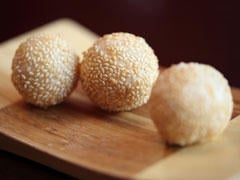 Façonner de petites boules, avec les mains ou des petites cuillères. Les rouler dans les graines de sésame puis y planter un petit bâtonnet pour rendre plus ludique la dégustation.