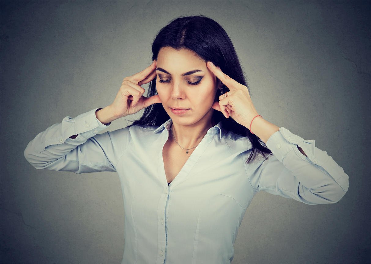 triste jeune femme avec l'expression du visage stressé inquiet ayant des maux de tête