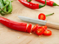Découper le piment en petits morceaux. Eplucher les crevettes.