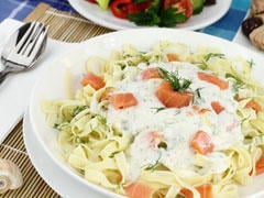 Tagliatelles à la crème et au saumon légères